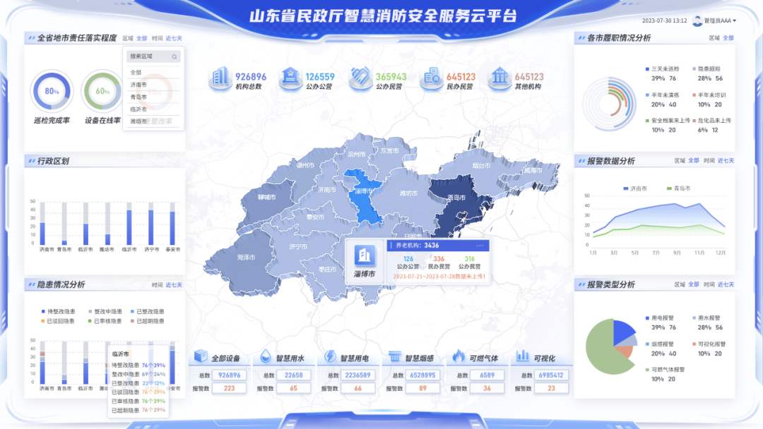 截至目前,由峻海物联建设运营的“山东省民政厅智慧消防安全服务云平台”已实现全省覆盖,为16个地市、超过3000家养老机构提供着实时、高效的消防安全综合监管服务。