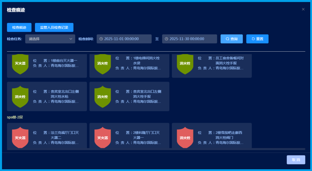 三是管理长效赋能,提升消防治理效能。平台通过数据分析,对各单位消防安全状况进行评分定级,实现分级监管与正向激励。同时,系统支持巡检巡查、培训考核等功能,推动消防安全管理制度化、常态化。