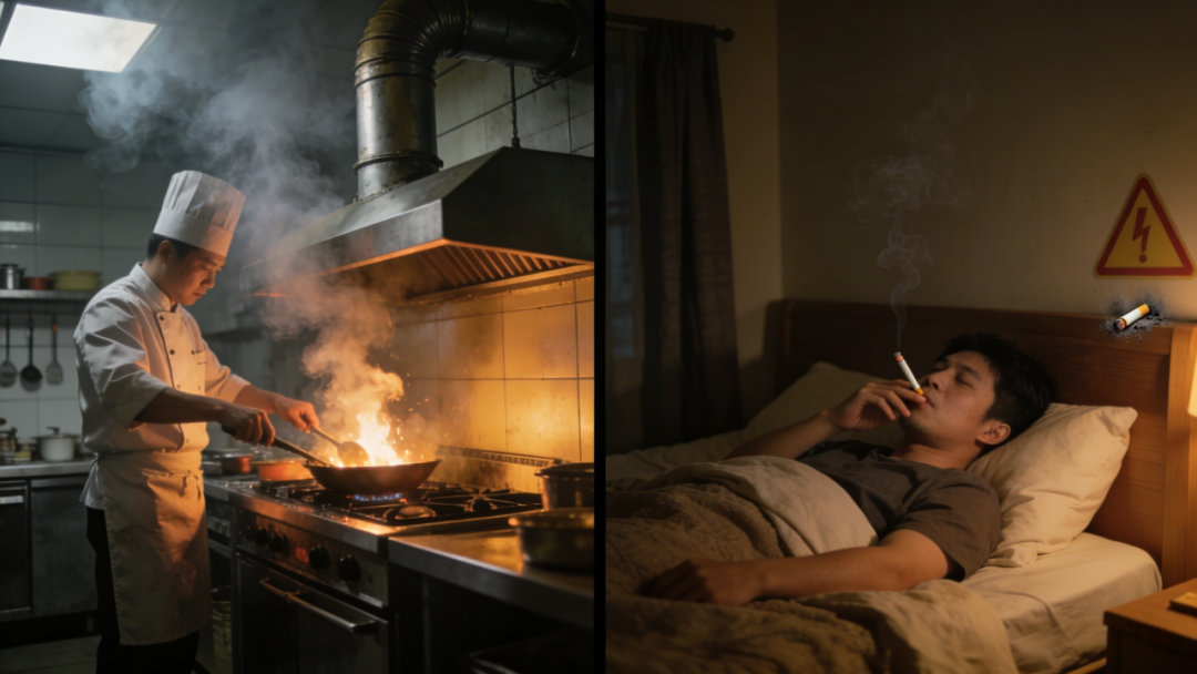 高层建筑内的底商多有餐饮店铺,厨房明火使用频繁,若烟囱管道维护不当、燃气使用不规范,或易燃物靠近火源,极易引发火灾。此外,居民居家卧床吸烟、儿童玩火等明火使用不当行为,也会给高层建筑带来极大火灾风险。